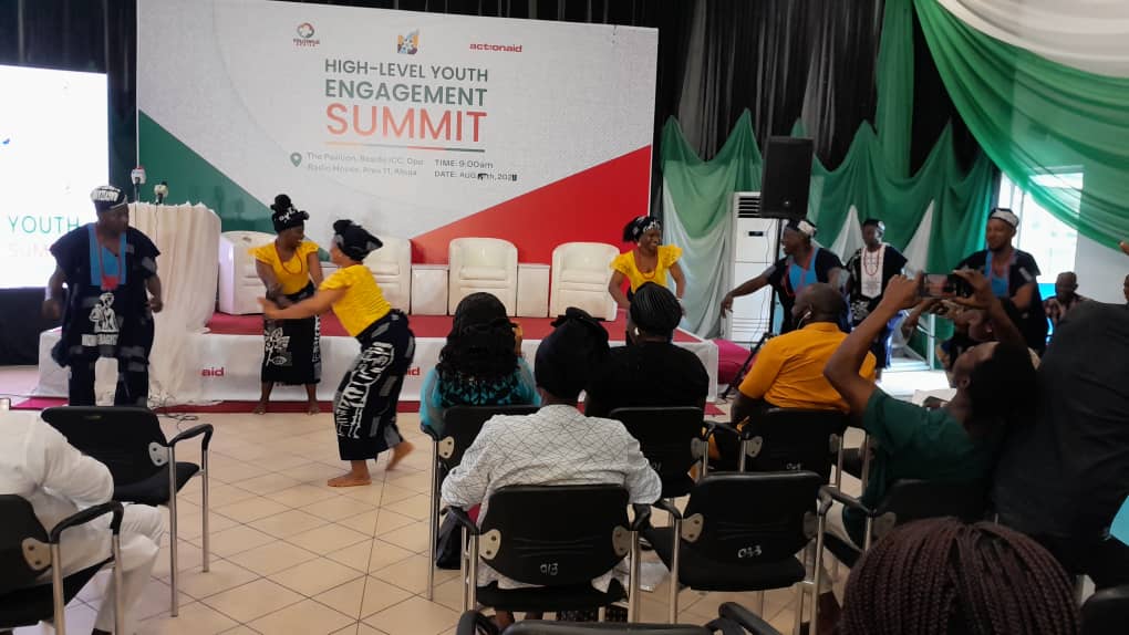 Dr. Ruqayya Wamakko representing the mandate Secretary HSES Dr. Adedolapo Fasawe during the high-level youth engagement summit organised by the Youth secretariat advocating for increased uptake of youth sexual and reproductive health services in primary health care services.